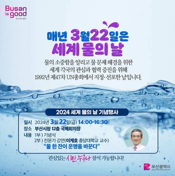 Water is an essential resource for sustaining life. However, indiscriminate usage and pollution pose a serious threat to sustainable water resource management. The World Water Day events in Busan raise awareness of these issues and encourage individuals to engage in water conservation and environmental protection activities.